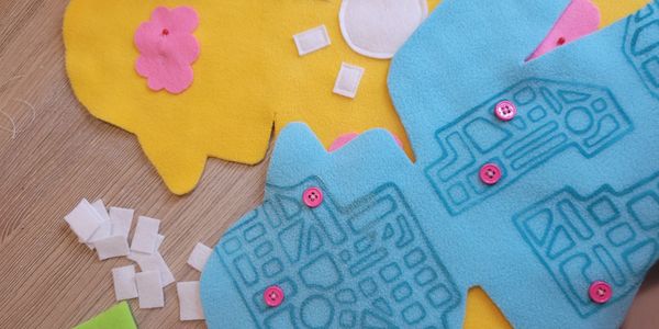 Fleece, Felt, Linoleum Print, Ink, Embroidery